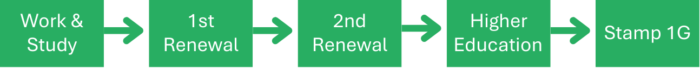 After completing your Work & Study course, you can extend your stay in Ireland for an additional 8 months by enroling in another 25-week course. Non-EEA students can stay in Ireland for up to 7 years, with up to 2 of those years (3 x 8 months) dedicated to English classes. To continue your education in Ireland, you can consider enroling in a Level 8 or Level 9 course. Completing a bachelor’s or master’s degree grants a Stamp 1G visa, allowing full-time work for 12 to 24 months.