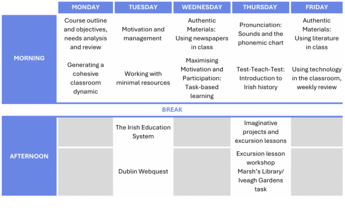 *Each programme is tailored to the needs of the group of educators participating in the course.